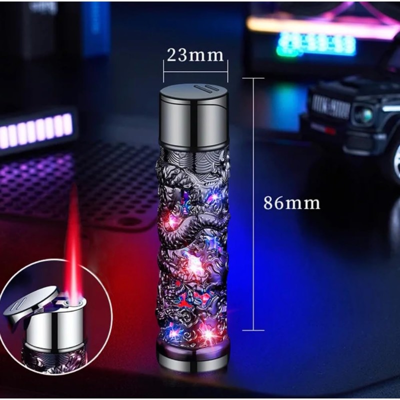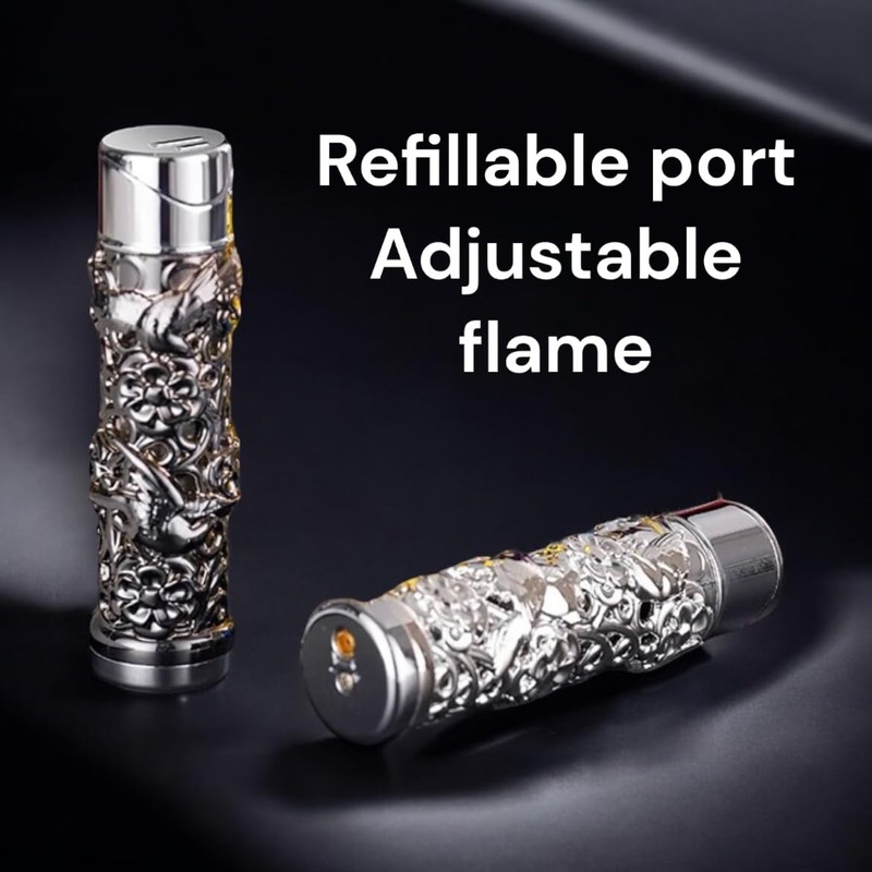 - Aesthetic: The mythical dragon is depicted in this elegant lighter. This cool cylinder shaped lighter is made of high quality zinc alloy, and its dragon relief body design. Exquisite workmanship and cylindrical shape.