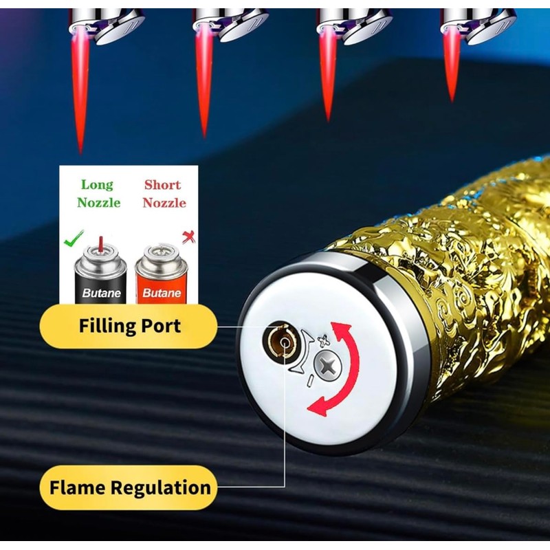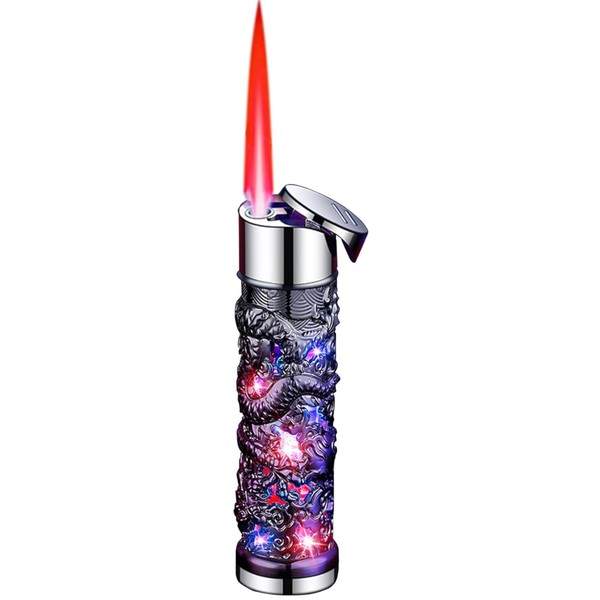 NIVEK Dragon Lighter, Cool Lighter, Refillable Carved Embossed Lighter, Light Up Lighter, Red Torch Jet Flame, Cylindrical Lighter