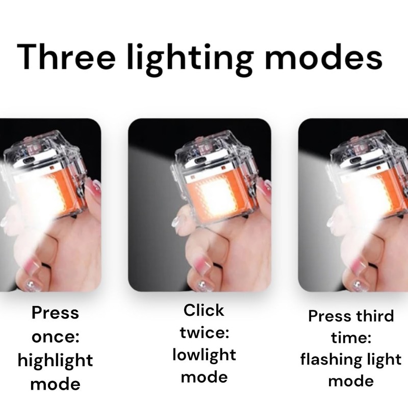 • Design: Lanyard buckle, light switch with 3 modes, power display, waterproof housing, Type C-charging port, double arc flame.