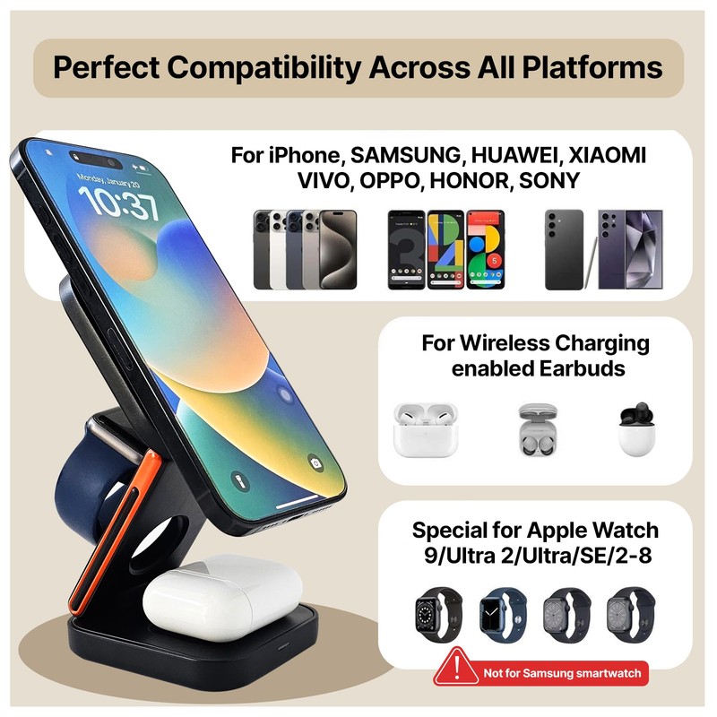 - CHARGING STATION: Experience the convenience of our 3?in?1 wireless charging station designed to power all your devices.