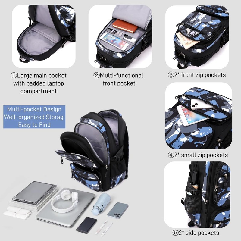 - Multi-pocket Rolling Backpack: The boys rolling backpack has 2 large compartments, 4 front zip pockets and 2 side pockets; boys school backpack has multiple pockets and compartments so it can hold all books, binders, tablet, water bottle, and other school supplies