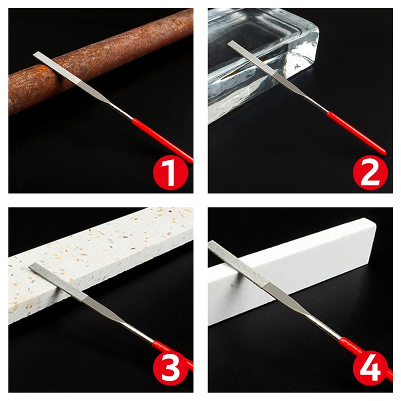 - Size information: The size of this small file set is 144 mm total length and 3 mm shaft diameter. It is suitable for processing ceramics, alloys and glass.