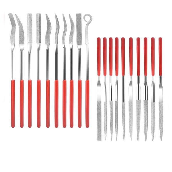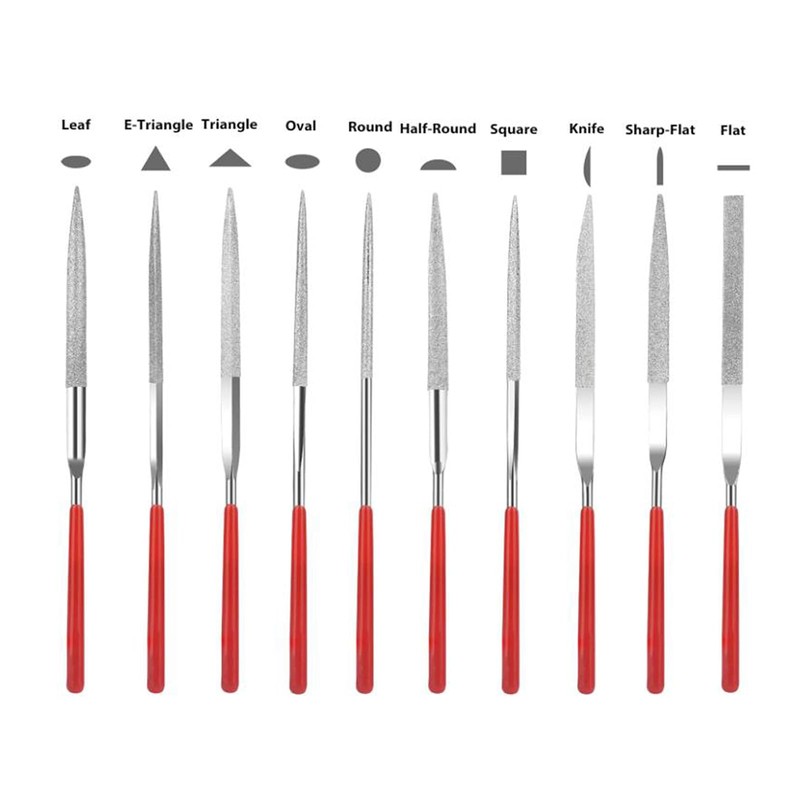 - Package Included This mini metal file set contains 20 diamond files of different shapes, including 10 regular shapes such as square, half round, triangular, lancet, oval and 10 special shapes to meet your different polishing needs. The special shapes are designed for difficult or unusual items.