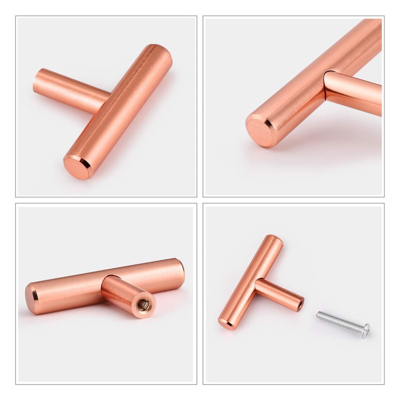 NIZADO -Solid Drawer Knobs Brushed Rose Gold Cabinet Knobs Stainless Steel,20 Pack-Modern T Bar Kitchen Cabinet Handle Drawer Pull, 2 Inch Total Length,Diameter 10mm(2/5 Inch)