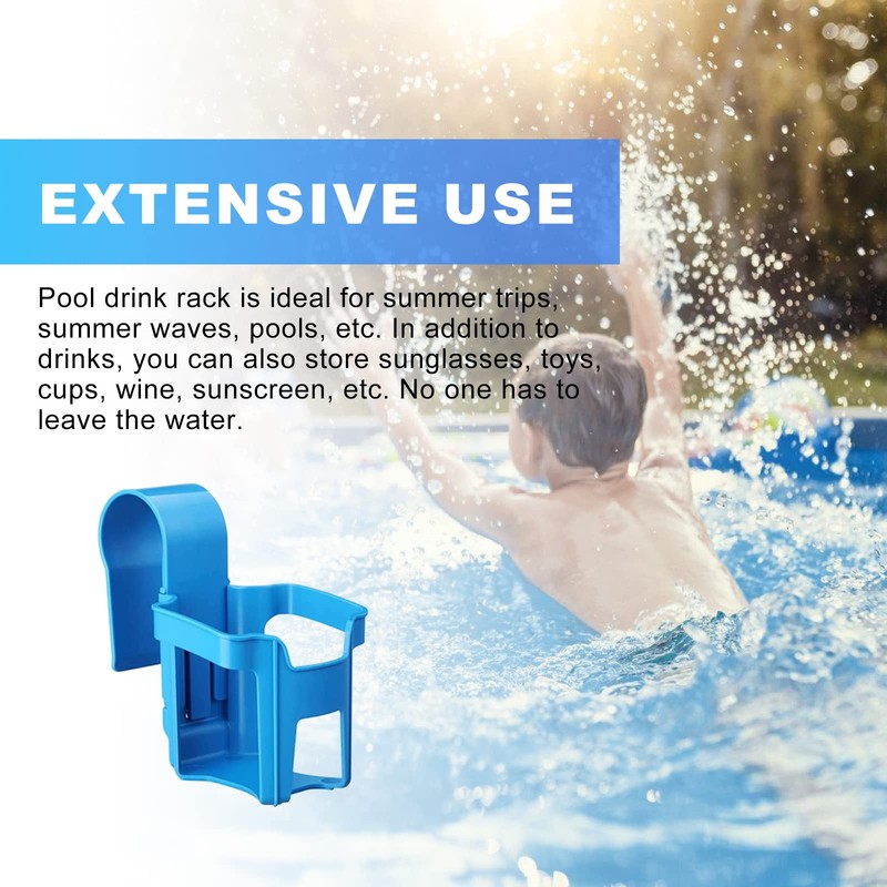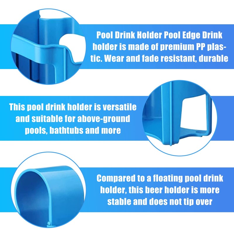 - ♥ 【Sturdy material】The blue cup holder pool edge are made of robust, reusable plastic that retains its colour and shape for a long time; they can withstand accidental collisions with floating objects and are very stable when attached to your pool pole, so you don't have to worry about spilled drinks.