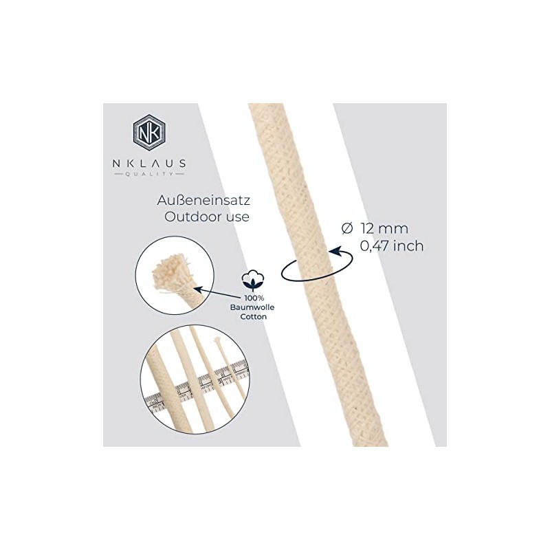 NKlaus 0.5 m torch wick 12 mm cotton wick garden torch bamboo torch replacement wick lamp wick round dock 1265