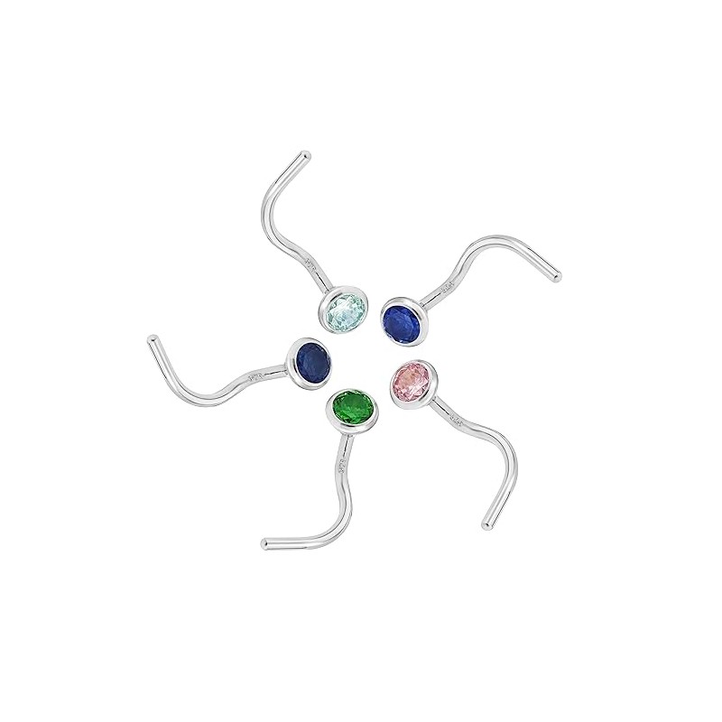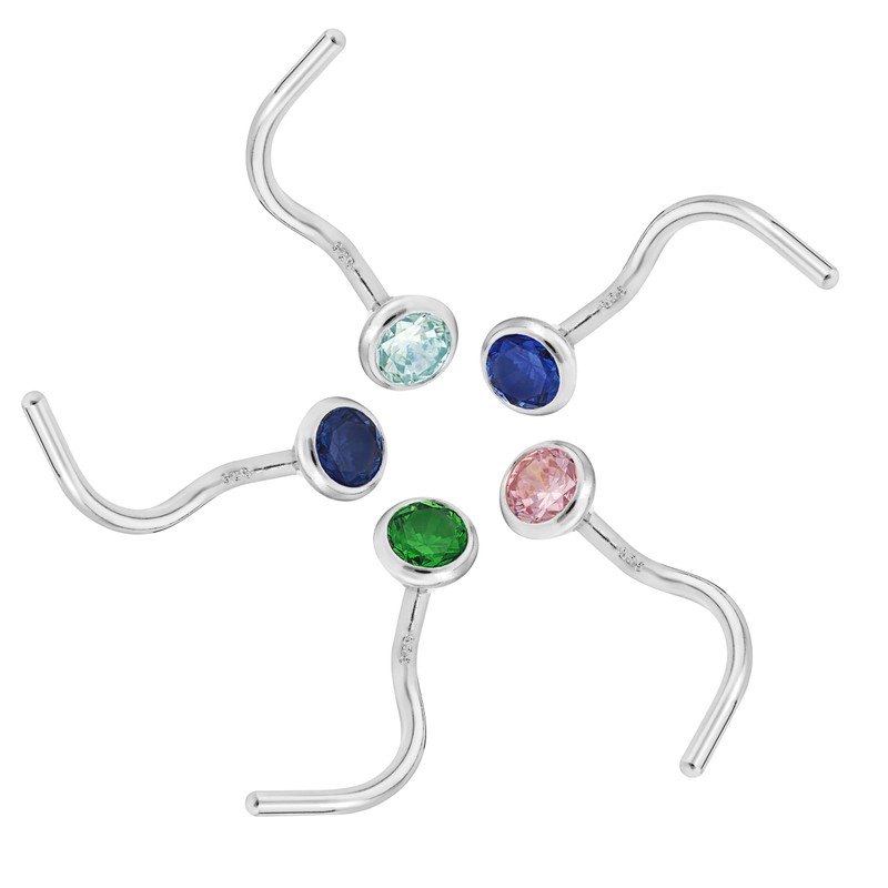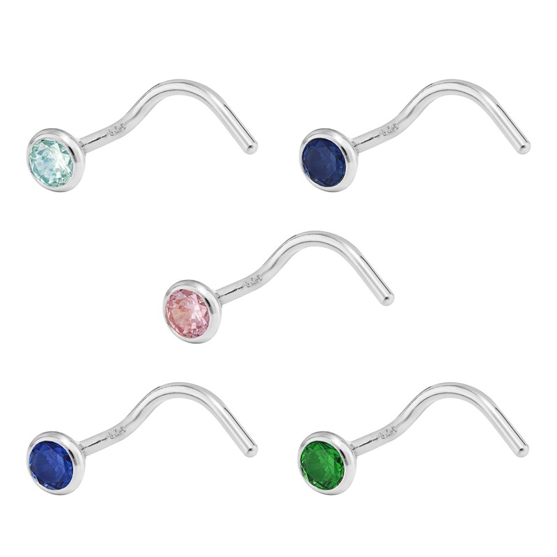 NKlaus Nose Piercing 925 Silver Spiral Shape 3.5 mm Zirconia Various Colours, Silver