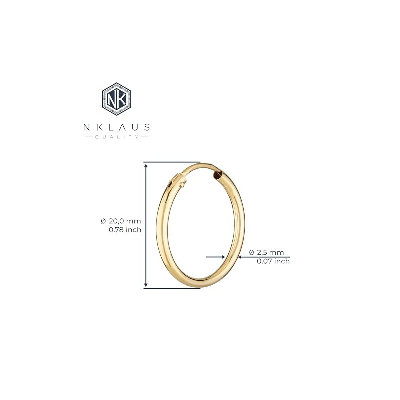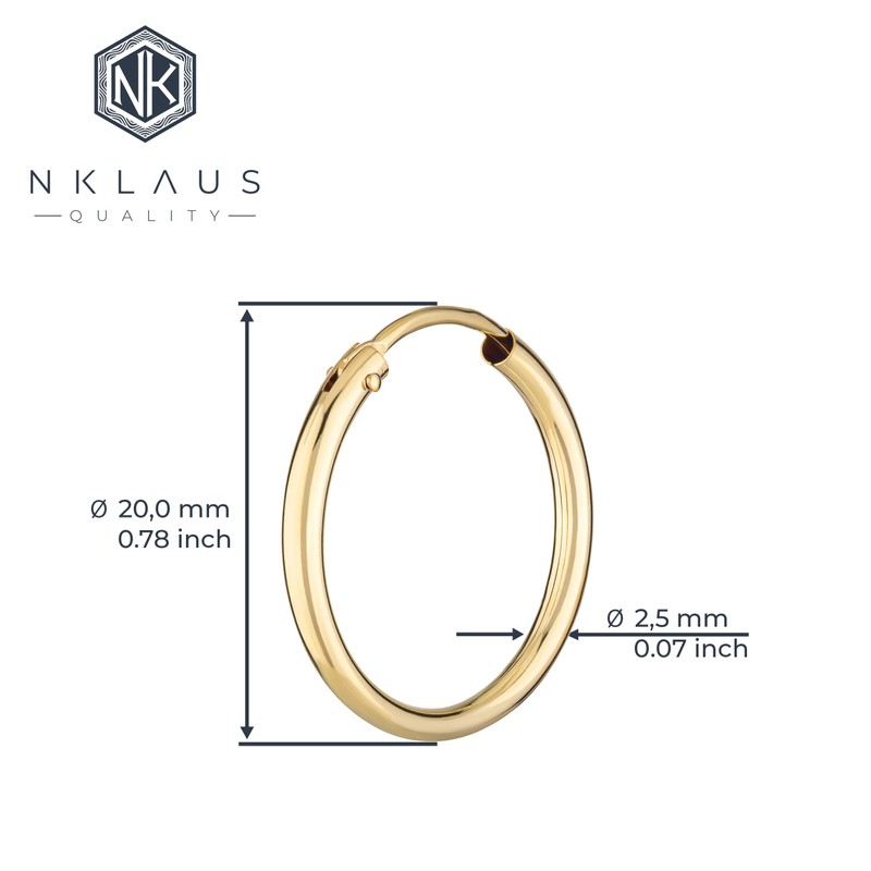 NKlaus Pair of 585 Yellow Gold Hoop Earrings Round Gold Earrings 20 mm 1848, Yellow Gold