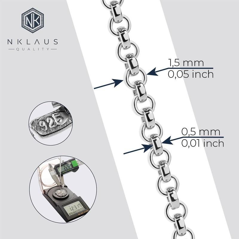 NKlaus Silver Pea Chain 925 Sterling Silver Round Solid Necklace 1.50 mm, Sterling Silver