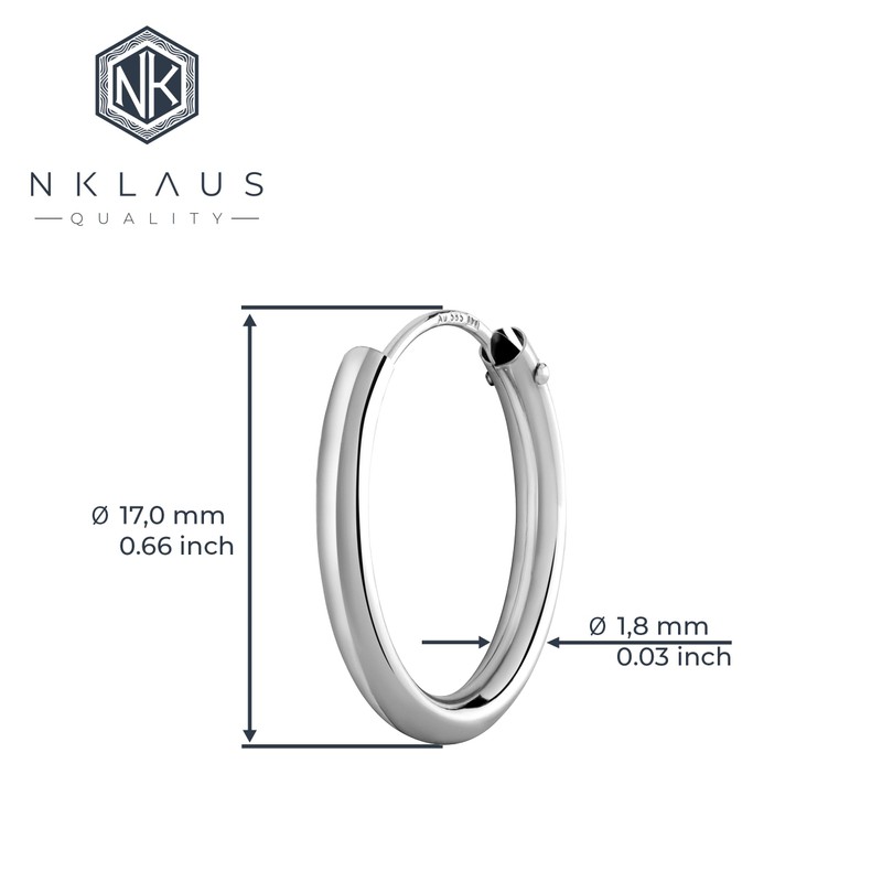 NKlaus Single 585 14 Carat Gold White Gold Hoop Earrings 16 mm Earring 1.8 mm Thickness Round 2566, Yellow Gold