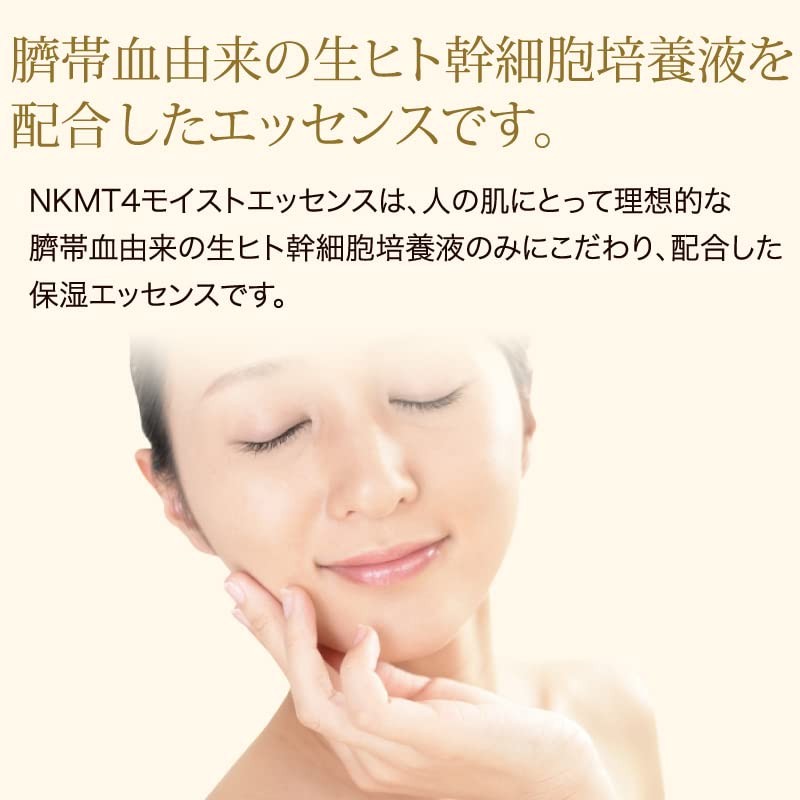 - NKMT4 Moist Essence is a moisturizing essence that has been carefully formulated to produce raw human stem cell cultivation fluid derived from the belly belt blood, which is ideal for human skin