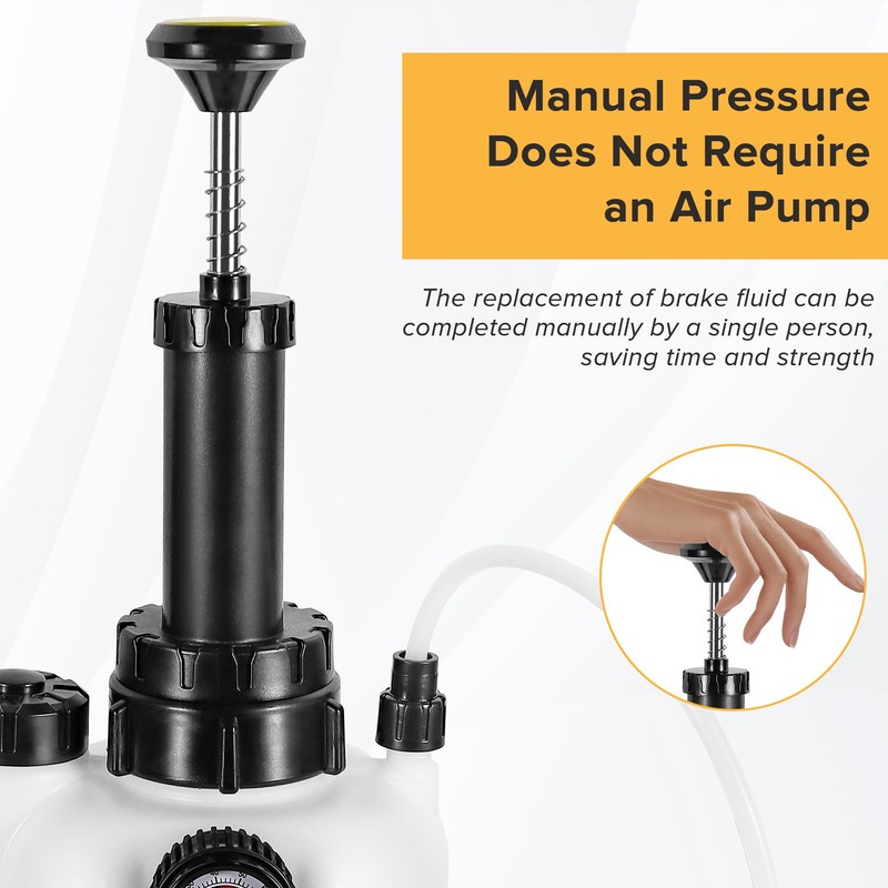 - Large Capacity Reservoirs: This brake fluid bleeder has 3L fuel tank passenger capacity, replacement tasks without frequent refills, without the risk of the container becoming empty.