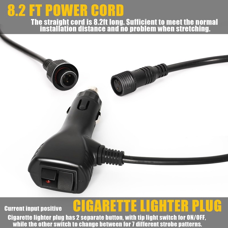 - 🚨 【STROBE LIGHT BAR DESIGN】 Professional-grade design with a die-cast aluminum shell. Highly durable and made to endure harsh conditions. This rooftop LED strobe is built to last with its rugged sleek frame & sealed weatherproof build. Cable Length: 2.5 meters (around 8.3ft) Extension cable for mounting on compact and large vehicles. Magnetic Base for quick and stabilized mounting.