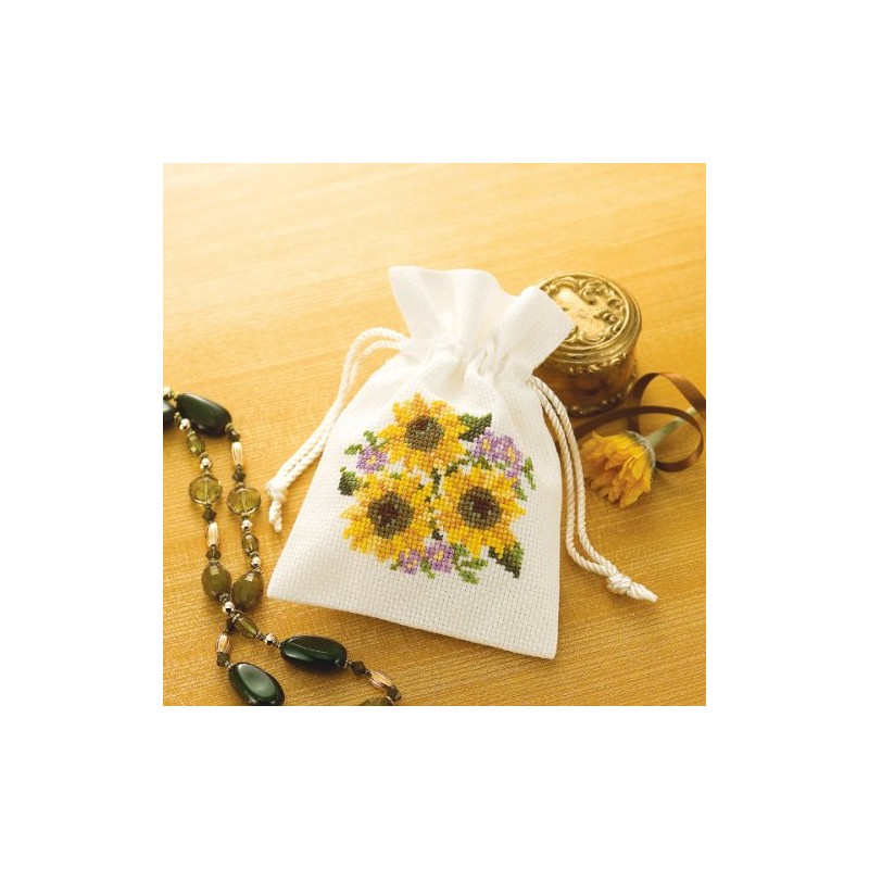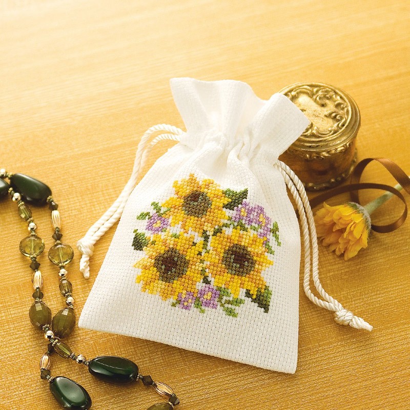 オリムパス製絲 ししゅうキット「花刺しゅうの優しい小物」 No.9018 きんちゃく・ひまわり