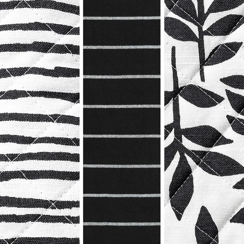 No. 918 Marrin Modern Mini Oven Mitt, Potholder, and Kitchen Towel Set, Black and White