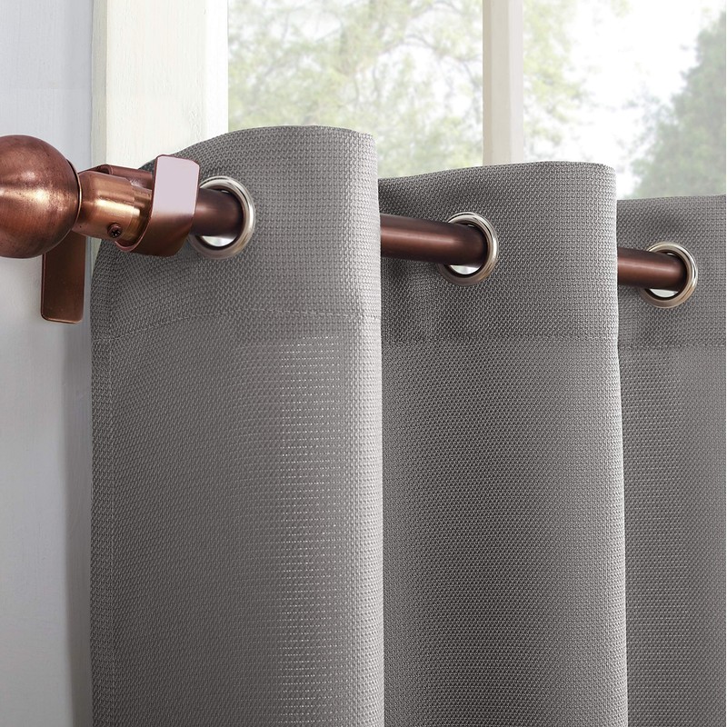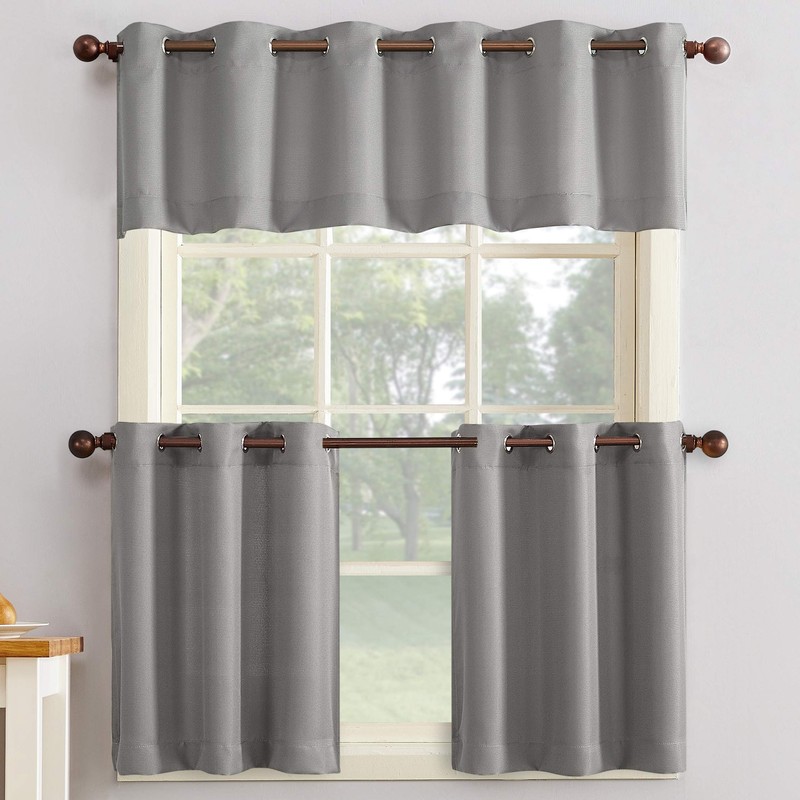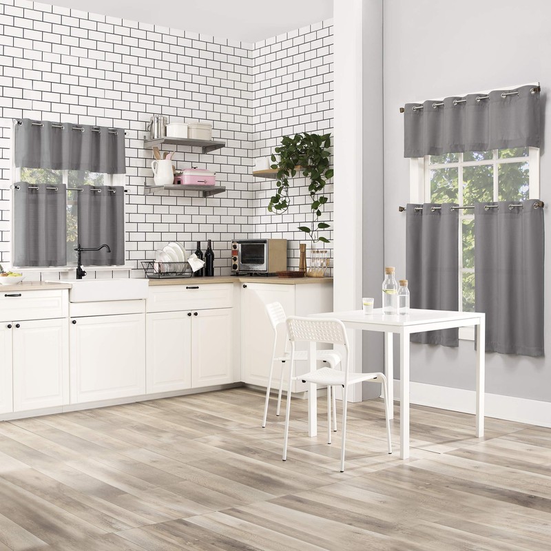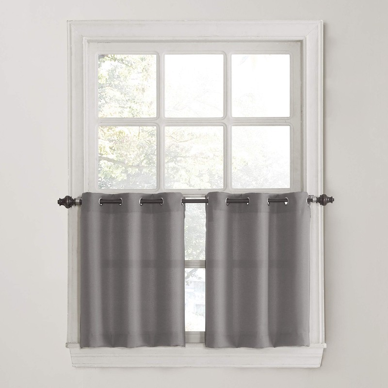 No. 918 Montego Grommet Textured Kitchen Curtain Tier Pair, 56" x 24", Nickel Gray