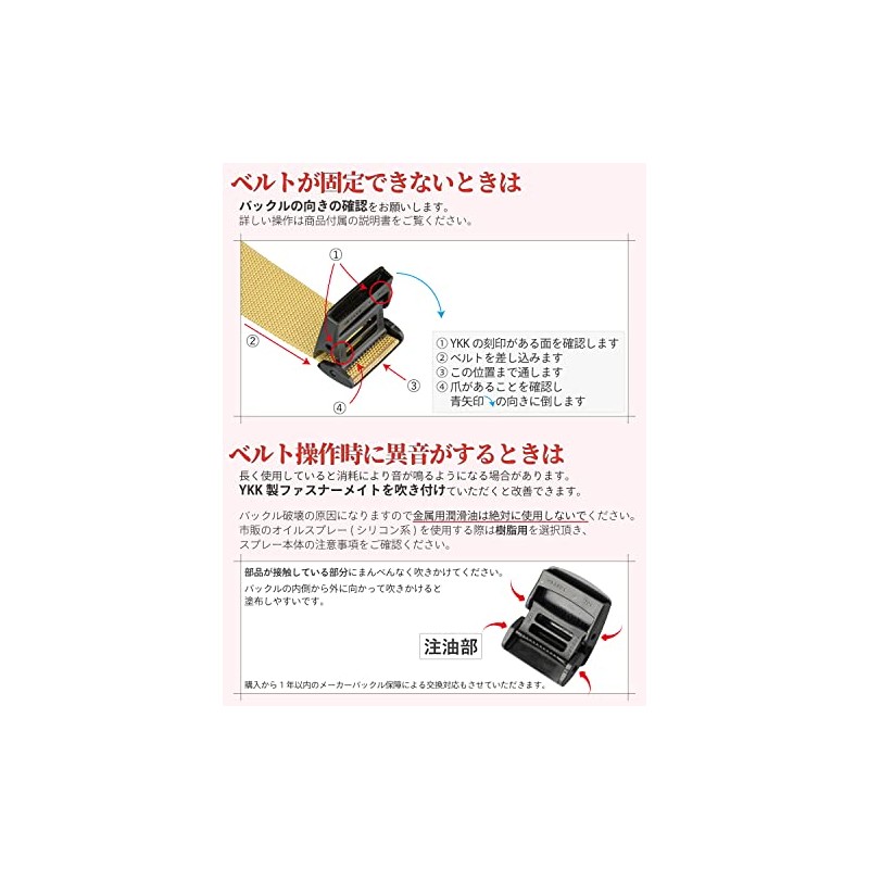 - (*1) Length including the buckle. (*2) For more information about waist size, please refer to the 3rd image. (*3) For detailed warranty, please refer to the "About initial buckle failure" at the middle of the page