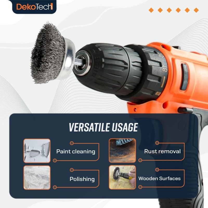 - ๐-๐๐ข๐๐๐ ๐๐ข๐ซ๐ ๐๐ซ๐ฎ๐ฌ๐ก ๐๐๐ญ : Includes 2 wire wheel brushes, 2 wire cup brushes, and 1 wire end brush, ideal for rust removal, paint stripping, and surface preparation on metal surfaces.