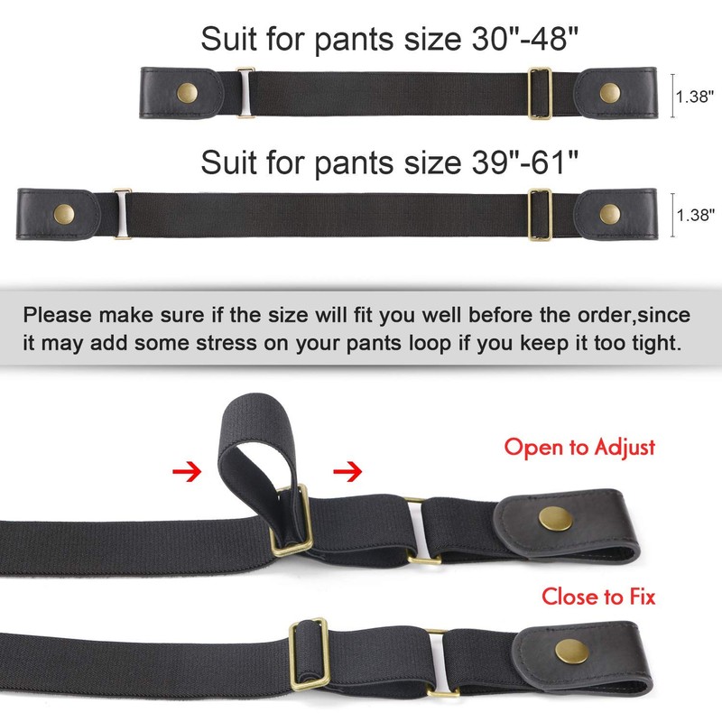 - ★Size Adjustable - Two length sizes for men choice, S: suit pants size 30”- 48”, L: suit pants size 39”- 61”. Width of belt: 1.38"/3.5cm, wider than other belts. There is a lightweight adjustable slide and you can adjust this no show buckle-free belt to fit your comfy size easily. It can be fitting. The width of the elastic no hassle belt is suitable for most jeans loops.
