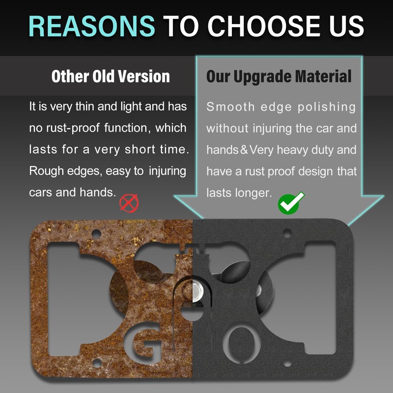 • DURABLE PLATE FRAME: This GRUOIZ license plate holder is constructed from high-density steel with a durable black powder-coat finish, ensuring strength, heat-resistance, not rust or fade, and corrosion-resistance. It is the perfect accessory for your front bumper