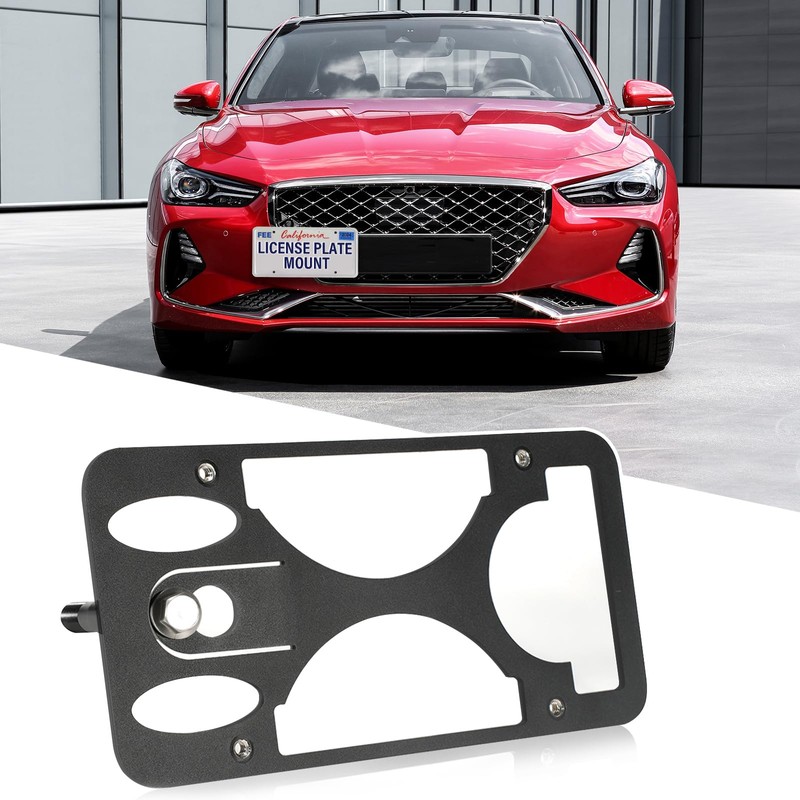No Drill Front Bumper License Plate Mount Compatible with Genesis G70 and G80 2017-2022 Front Tow Hook License Plate Mounting Bracket Holder Car License Plate Frames Accessories Kit