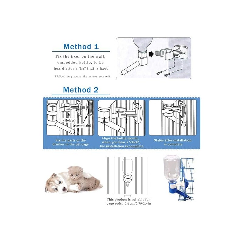 - ◆v◆The hanging dog cage bottle is intuitively designed to prevent dripping, Its stainless steel balls block the tip of the hose and allow water to pass through only when your pet pushes it.