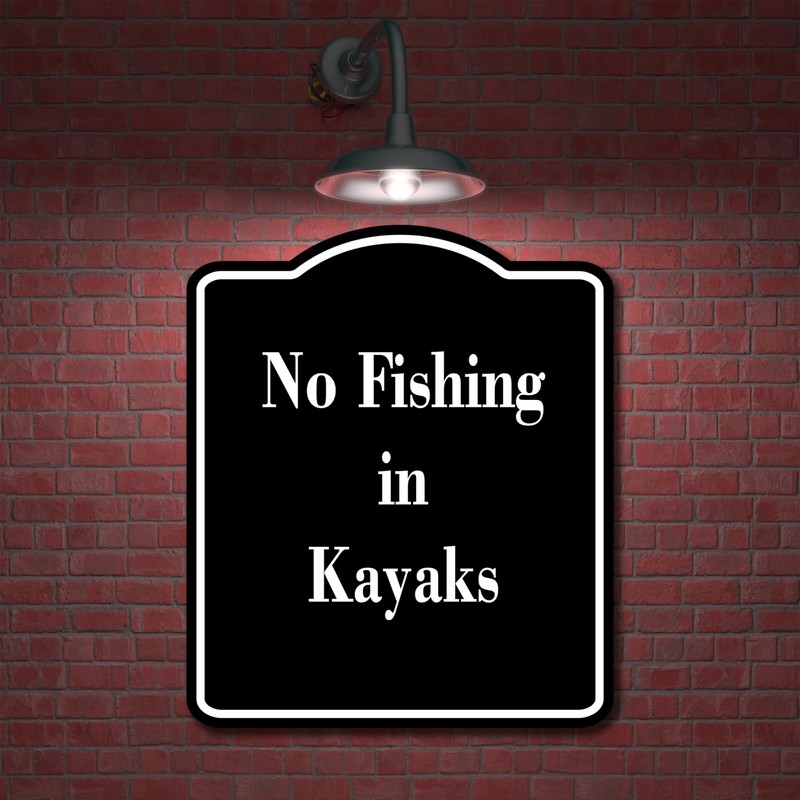 No Fishing in Kayaks BLACK Aluminum Composite Sign 8.5''x10''
