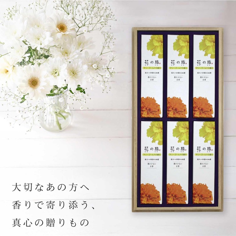 - Specifications: Dimensions (Exterior): Approx. 5.1 x 12.8 x 1.6 inches (130 x 325 x 40 mm); Incense Length: 5.3 inches (13.5 cm); Contents: Incense Sticks approx. 0.6 oz (17 g) (approximately) x 6 bundles; Smoke quantity: Extremely small; Burning time: Approx. 25 minutes; Fragrance: Gentle floral bouquet fragrance; Fragrance: Gentle floral bouquet fragrance; Material: Tub workshop; Material: Tub island