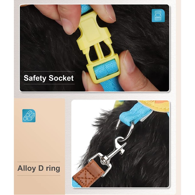 • 【Safety And Comfortable 】:Design with your pets’ safety in mind - Custom durable metal double D-ring for top lead and front lead, gives you full control of your pets without choking them. Built with comfy cushioning, and reflective stitching for safety in low-light situations.55 inches long matching leash, the hook attached on top of the leash is 360-degree rotatable.