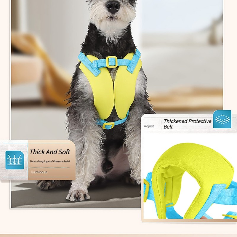 • 【NO PULL HARNESS】: Only weighs 0.12KG The strap is thickened to cushion shock and resist pressure to allow your dog to run freely