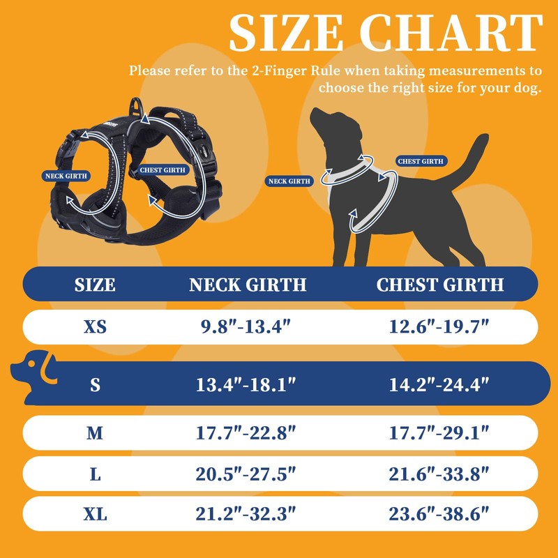 • MULTI-CHOICE: From large dogs to small dogs have the corresponding size, we recommend that the measurement according to the "Two-Finger principle" to choose the right size for your dog. If there is any problem with the size, please contact our customer service, we are always at your service.
