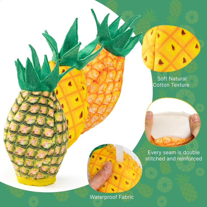 - Interactive Play and Bonding:Whether your dog loves to fetch, tug, or chew, these pineapples are designed for interactive play. The soft, squeezable texture and squeaky sound encourage engagement, promoting bonding between you and your pet. Playtime will never be the same with these fun, multi-functional toys that are perfect for strengthening your relationship with your dog.