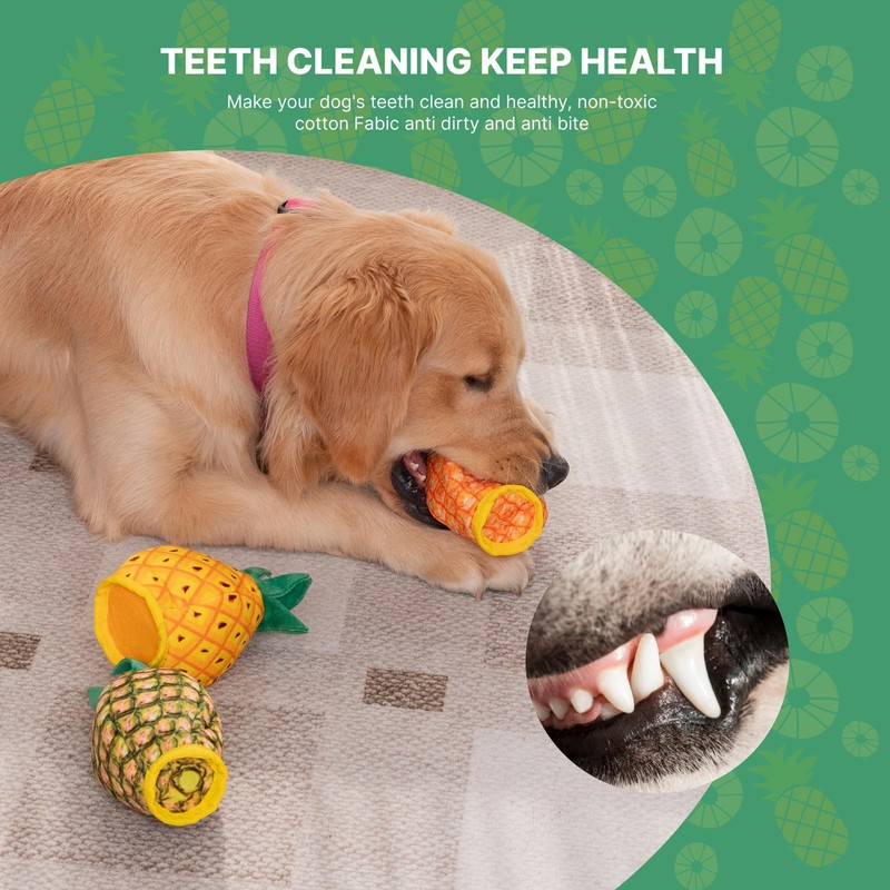 - Helps Relieve Boredom and Anxiety:These adorable pineapple toys are not just for fun—they’re also great for relieving boredom and anxiety. The combination of squeaky sounds, soft texture, and interactive design helps calm your dog during stressful moments or when left alone. Perfect for comforting your dog and providing them with a healthy outlet for their energy.