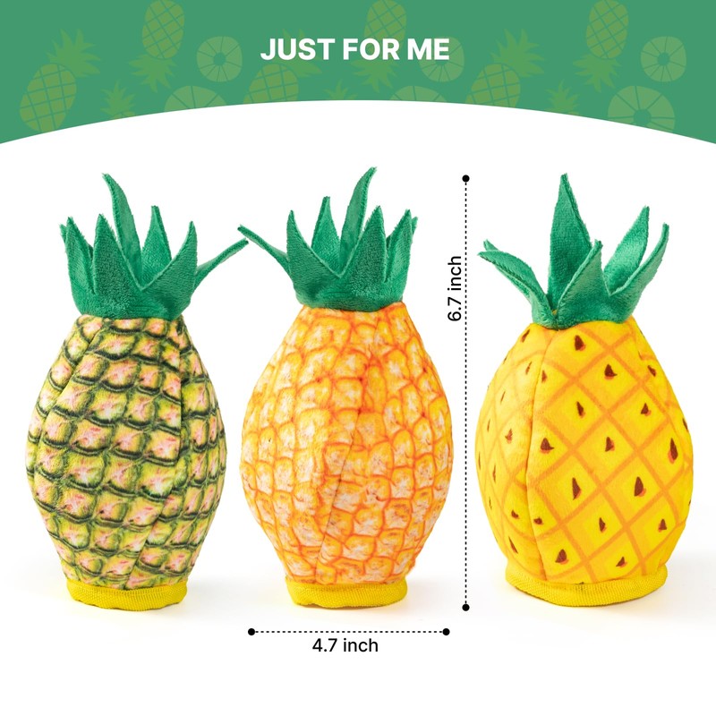 - Soft and Supportive Design for Gentle Play: These pineapples feature a soft, pet-friendly exterior that’s gentle on your dog’s teeth and gums. With a lightweight and structured form, they are perfect for light chewing, tossing, and cuddling. The toys maintain their playful 3D shape after squeezing and biting, making them an excellent choice for gentle play sessions and daily entertainment.