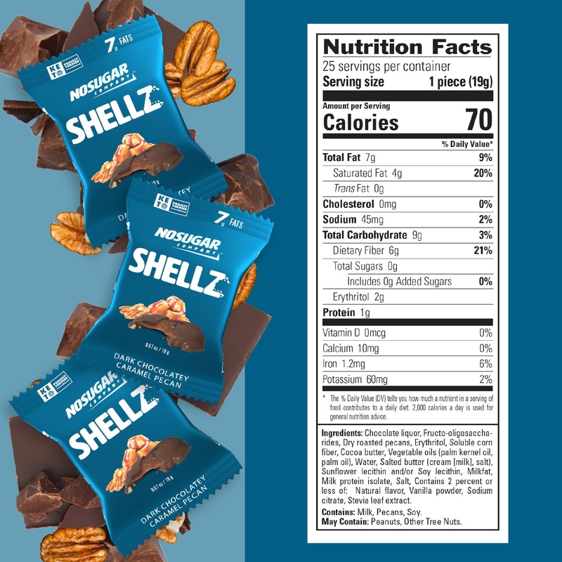 - GRAB & GO - Snacking on keto just got easier. Carry some of our Keto Turtles when you are on the run. Our Low-Carb No Sugar chocolate covered pecan shellz are great as a mid-day treat or as an on-the-go snack.