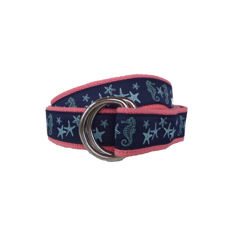 This novelty seahorse and starfish print was designed by us and made for you! This ribbon belt is from our Signature Series Line. Easily show off your casual style and pair this belt with any style khakis, jeans or your favorite cargo short. Each belt is hand made in the U.S.A and made to order.