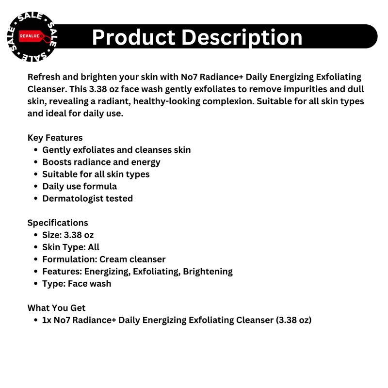 1x No7 Radiance+ Daily Energizing Exfoliating Cleanser (3.38 oz)