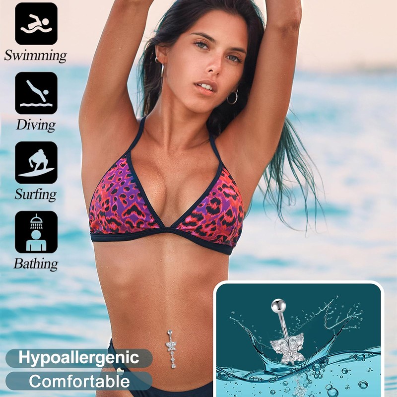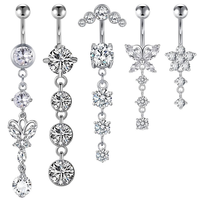 - VARIETY STYLES: Long belly button piercing offers a wide range of designs, including unique shapes such as butterfly zirconia belly button buckles and flower zircon as well as simple cubic zirconia piercings. Silver matches all clothing styles, from cute and cool to elegant. Whether with a short top or as an everyday piece of jewellery – stainless steel belly button piercing can be easily integrated and sets accents