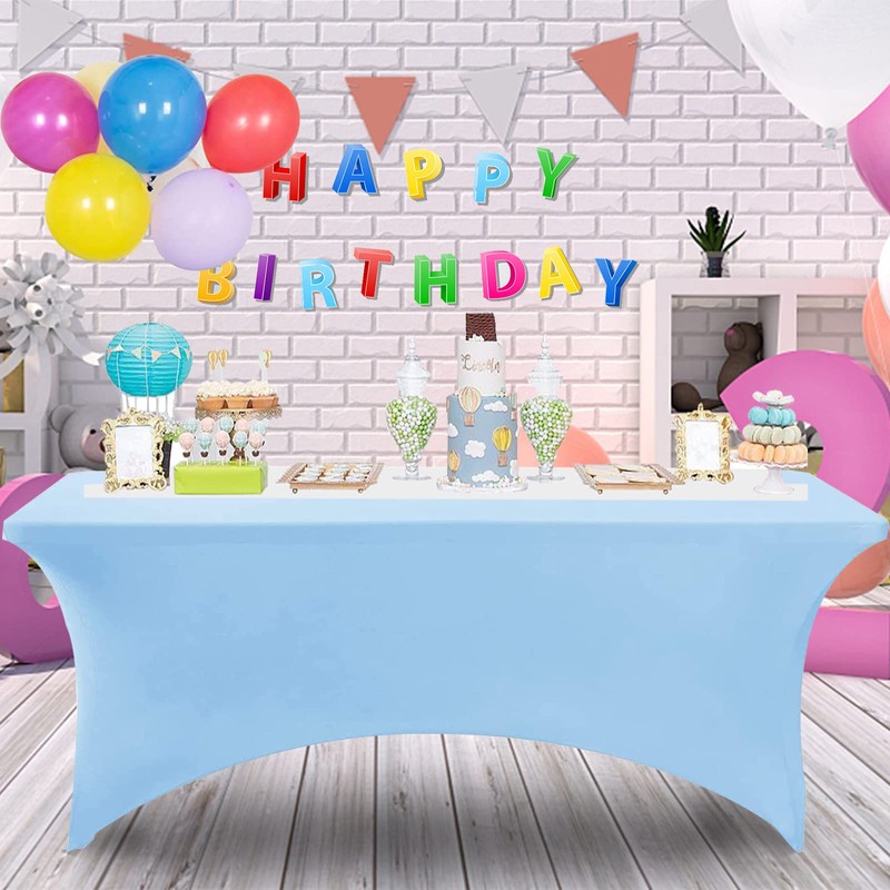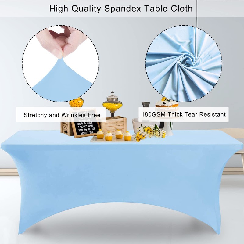 - 👍 Stretch Table Clothes for 6 Foot Rectangle Folding Tables - The display size of the light blue tablecloth is 72inch length, 30inch width and 30inch height, perfect fit 6 foot rectangle folding tables or 6 foot rectangle tables.