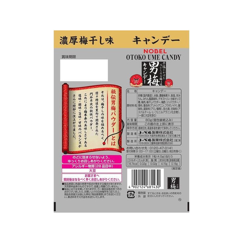 Nobel Otoko Ume Candy 2.8 oz (80 g) x 4 Bags