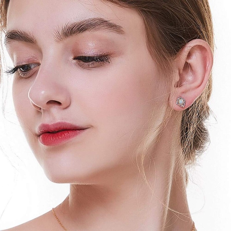 NOBEL Schmuck Opal Stud Earrings 925 Sterling Silver Vintage Look, enamel, Opal