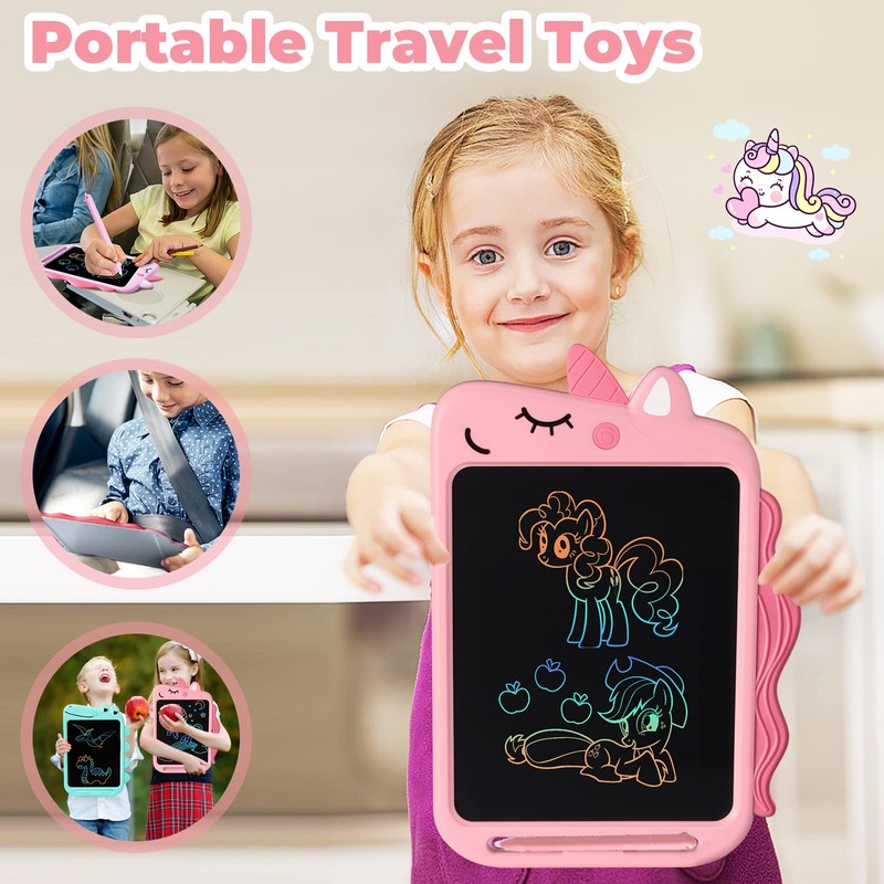 NOBES Toys for 3 4 5 6 7 8 Years Old Girls Boys Gifts, Portable Educational Unicorn Toys for Toddler, 10-inch LCD Writing Tablet Drawing Pad for Kids, Toddler Doodle Toy, Holiday Birthday Gifts (Pink)