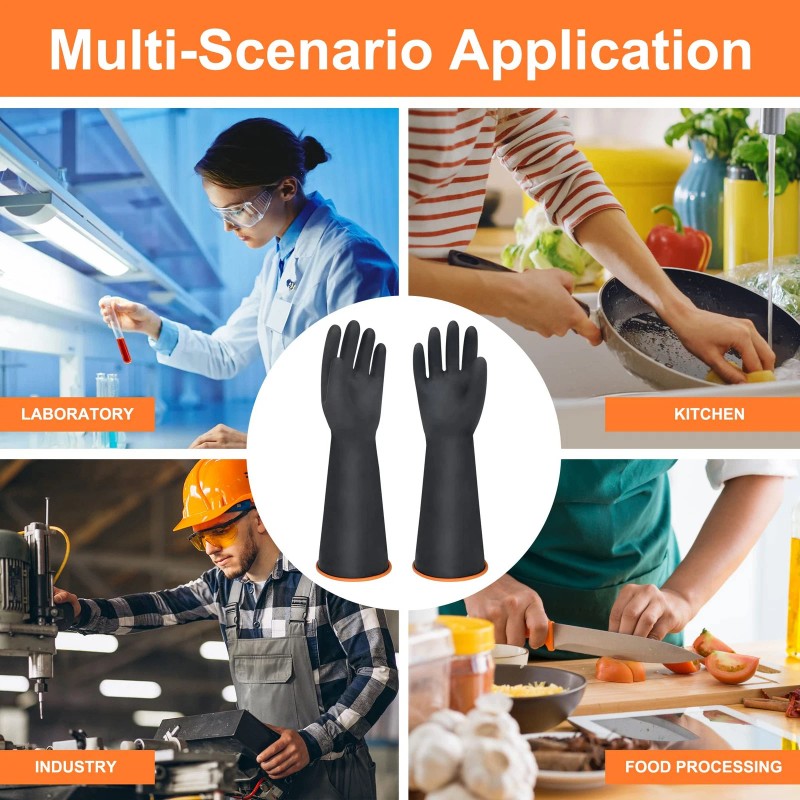 【Adequate Protection】-- Acid & alkali resistant, our heavy duty gloves have high resistance to acid, alkali, oil, alcohol and liquid. Perfect for handling potentially hazardous items and liquids. You just need to wear these Latex Chemical Resistant Gloves to work.