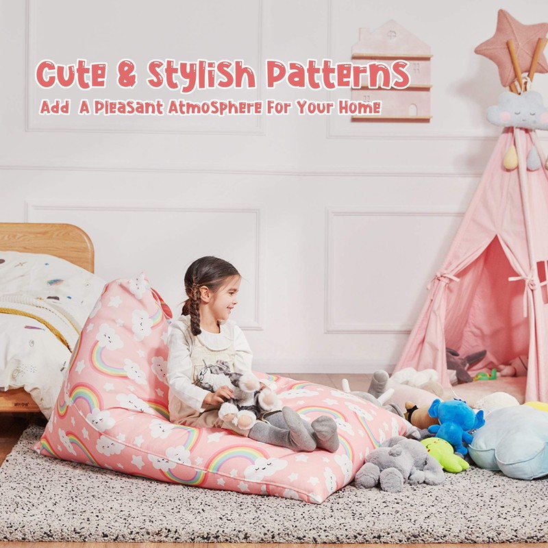 - DECORATIVE & FUNCTIONAL 9 well-designed patterns, cute or fresh to meet the different needs of you and your children, bring a bright light to your sweet home and create a more pleasant atmosphere. Unlike other bird nest bean bag on the market, its triangular shape creates a comfortable seat with headrest and backrest to read books, play games or just relax. Suitable for toddlers, teenagers and adults.