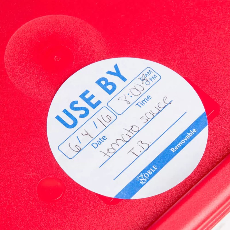 Ensure proper food rotation with these Noble Products 3" "Use By" removable round labels!