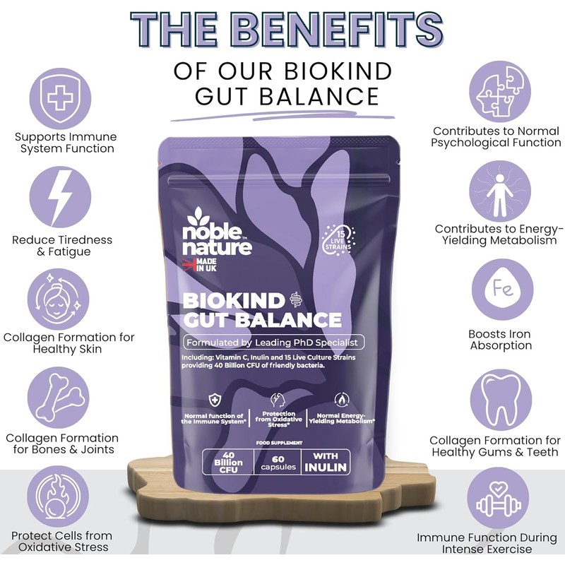 Noble Nature Biokind Gut Balance – 40 Billion CFU Probiotics | 15-Strain Bio Cultures Complex with Lactobacillus & Bifidobacterium | Supports Gut, Digestive & Immune Health | 60 Capsules