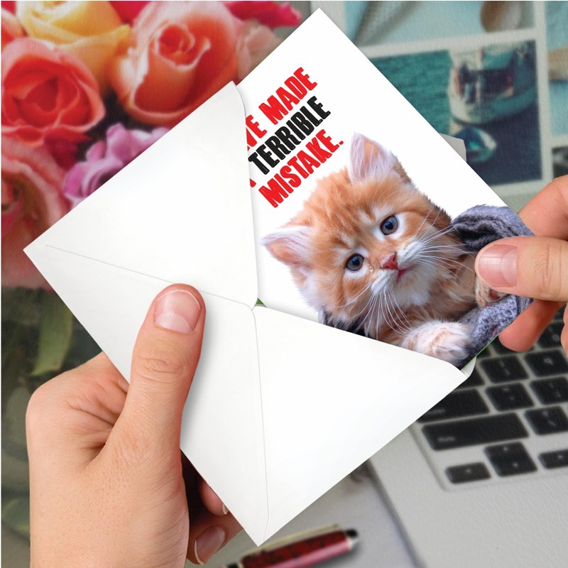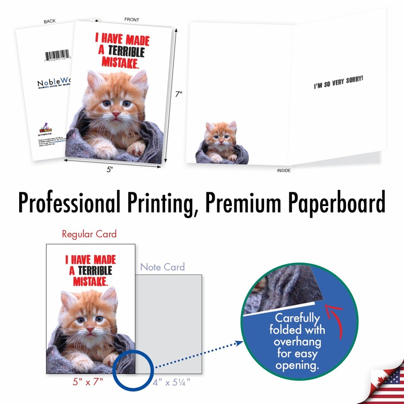 NobleWorks Hilarious Sorry Greeting Card with 5 x 7 Inch Envelope (1 Card) Cat Terrible Mistake C8149SRG