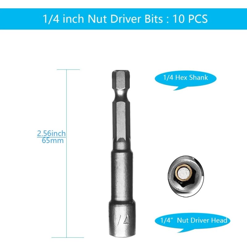 NoBrand 1/4'' Nut Driver Bit Sets 10PCS, 1/4 inch Nut Driver Hex Shank Quick Change S