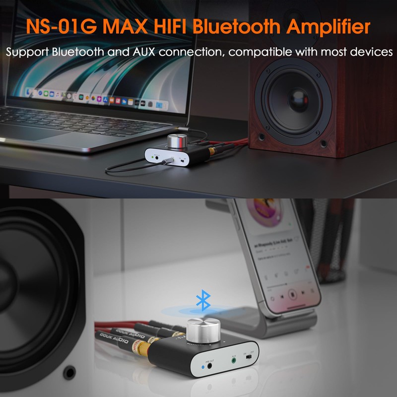 Nobsound TPA3221 Bluetooth Verstärker für Lautsprecher: HiFi 100W×2 mit Aktiv Subwoofer Anschluss für Heimkino & Auto (NS-01G MAX)