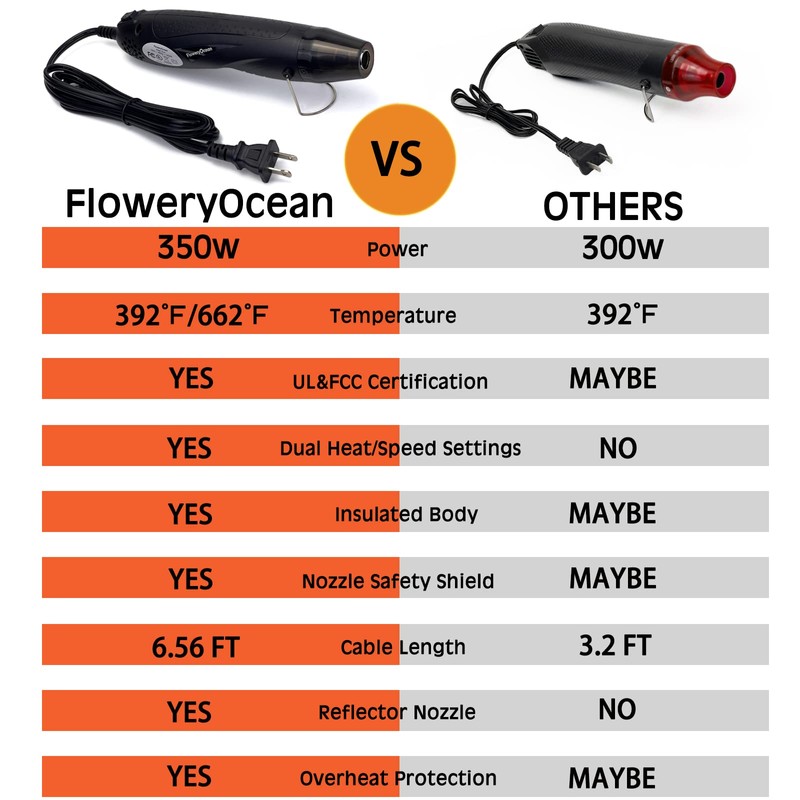 - 【Widely used heat gun】: 6.56 ft cable allows you to work anywhere easily, make work more convenient. heat shrink gun for resin, shrink wrap, vinyl wrap, candle making, jewelry making, embossing, watercolor drying, shrink tubing, wire connectors, phone repair, defrosting and so on. If you like DIY, it's a great tool for creating your own handmade work.